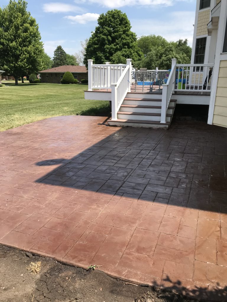 - Stamped concrete will not buckle or fall off on the edges like bricks.